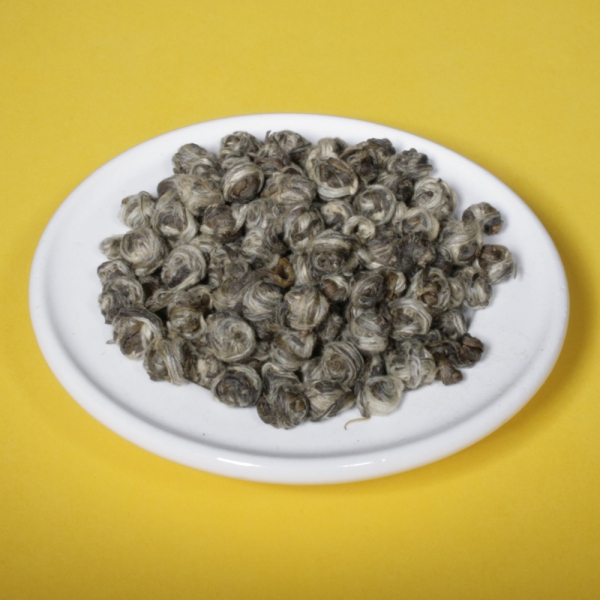 Ein absoluter Spitzentee chinesischer Teemanufaktur aus der Frühlingsernte. die zu kleinen Teekugeln gerollten Blattknospen verströmen einen süßlichen Jasminduft. Der Aufguß ist honiggelb mit weichem, blumigem Geschmack. Ein Tee für Jasmingenießer. Nur in begrenzter Menge verfügbar.