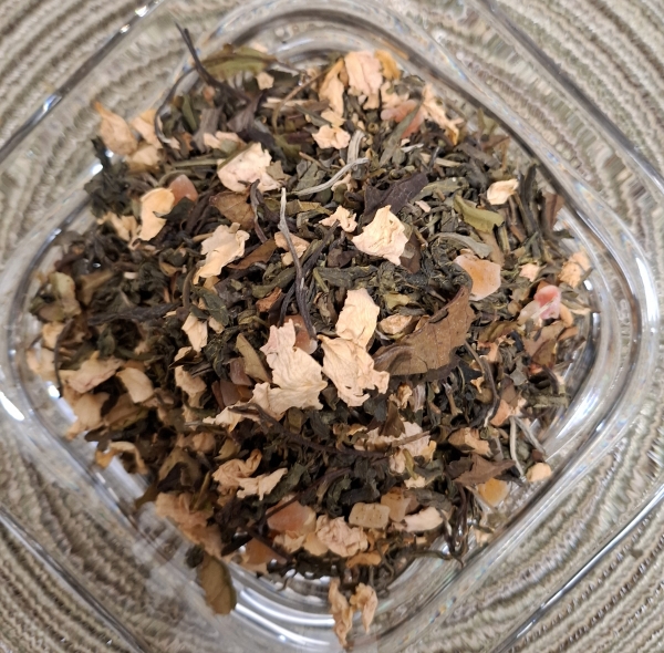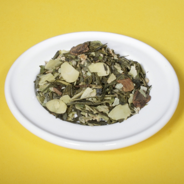 Grüner Tee, Aroma, Zimtrinde, Orangenschalen und Mandelflakes.