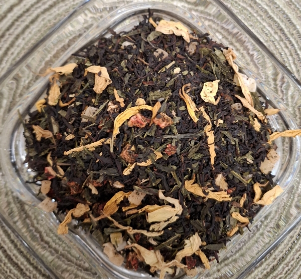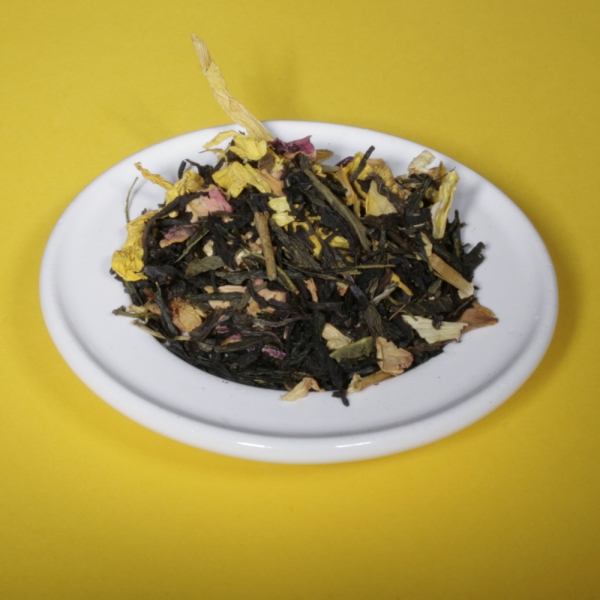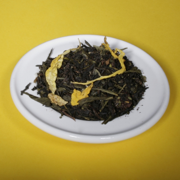 Zutaten: schwarzer Tee(52%), grüner Tee(44%), Aroma, Rosenblüten, Sonnenblumenblüten.