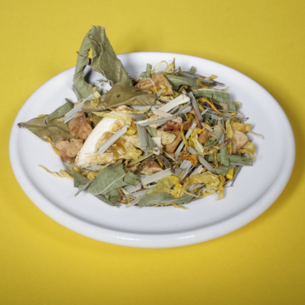 Kräutermischung ohne Zusatz von Aromastoffen.Zutaten: Apfelstücke, Zitrusscheiben, Lemongras, Verbena, Zitronenmyrte, Ringelblumenblätter.